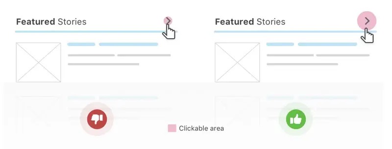 必生这种情况是因为可点击区域未应用于整个元素。 为了更加清楚,请参见下图,左图可点击区别(圈红部分)明显比右图的小很多,所以右图的实现用户体验会更好。