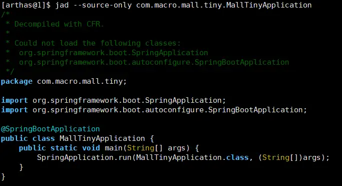 jad --source-only com.macro.mall.tiny.MallTinyApplication