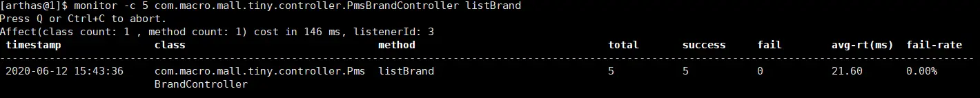 monitor -c 5 com.macro.mall.tiny.controller.PmsBrandController listBrand