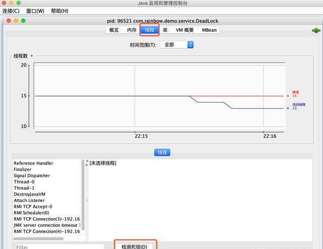 $ jvisualvm切换到“线程”窗口