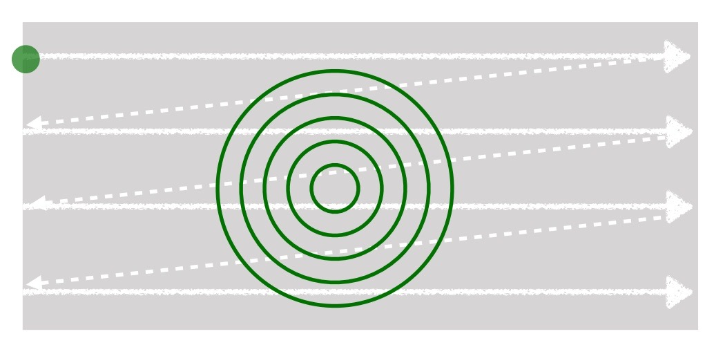 电子光束从屏幕左上方进行横向向右进行扫描,到达屏幕右边界后从第二行进行再次向右进行扫描。