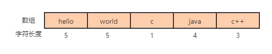 如下图,一共五个元素,每个元素的长度都是不一样的,这个时候选择最大值5作为每个元素的内存大小,如果选择小于5的,那么第一个元素hello,第二个元素world就不能完整存储,数据会丢失。