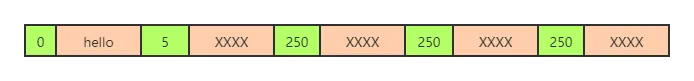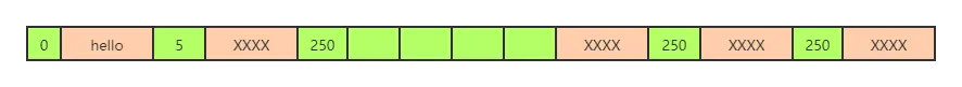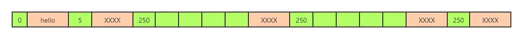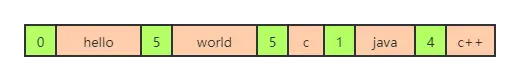 如下图,如果需要从头开始遍历,取某个节点后面的数字,比如取“hello”的起始地址,但是不知道其结束地址在哪里,我们取后面数字5,即可知道"hello"占用了5个字节,即可顺利找到下一节点“world”的起始位置。