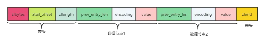 (目的是为了直接定位到尾节点,方便反向查询)。 - zllength:记录了压缩列表的节点数量。即在上图中节点数量为2。