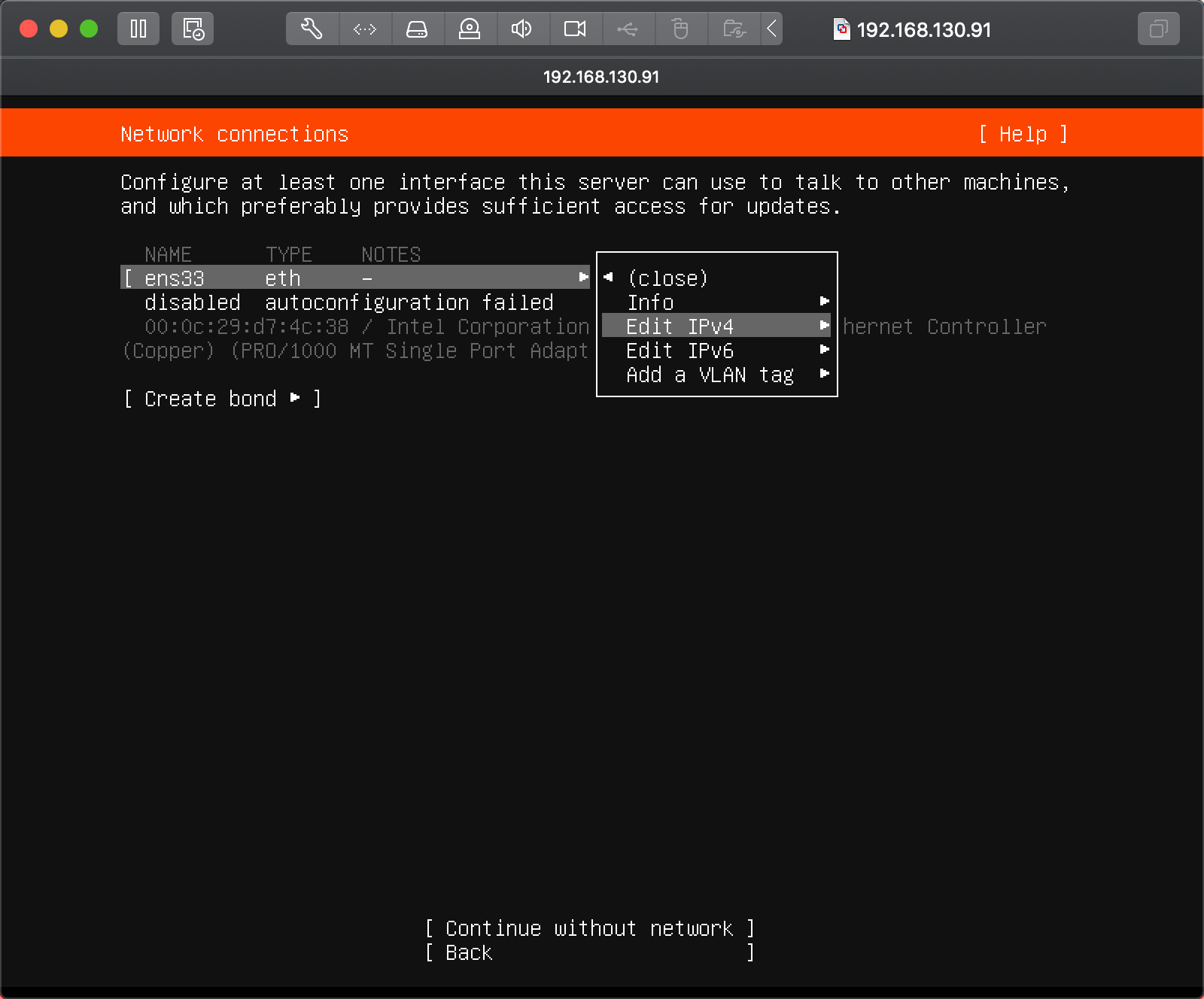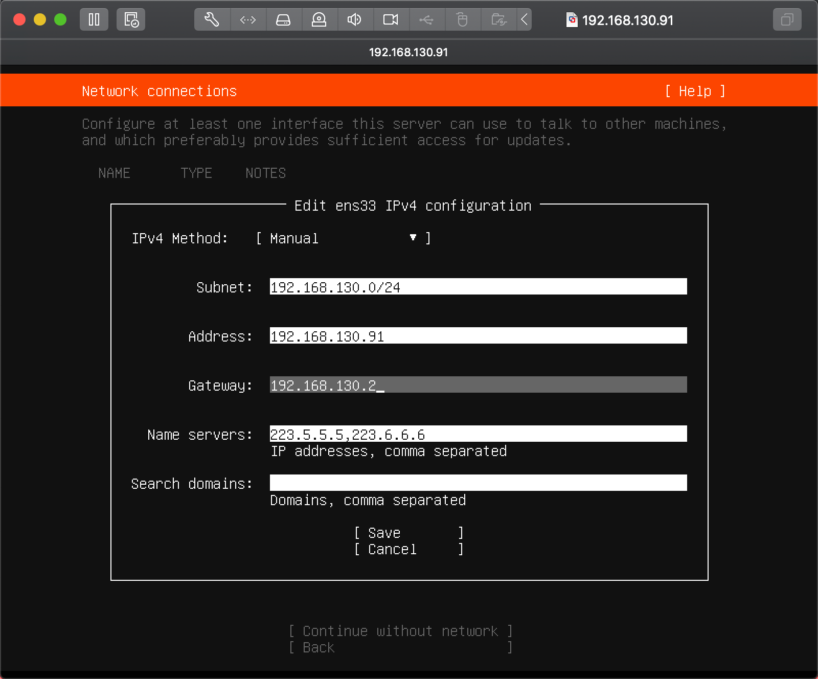 但是由于Server端只有tty终端界面显示,而且显示的区域只有屏幕大小,不能上翻,也不能粘贴复制之类的,所以一般的都是通过ssh的方式用第三方ssh客户端连接,而假如是动态IP的话,每次重新开机之后IP可能会变化,所以ssh客户端每次都要重新设置IP才能连服务器虚拟机,非常的不方便,所以推荐用静态IP的方式。 当然,为了防止手动设置的IP不对,安装的过程中又需要网络,那此处可以用默认的DHCP的方式上网,等系统安装完成后再手动设置为静态IP也是可以的
