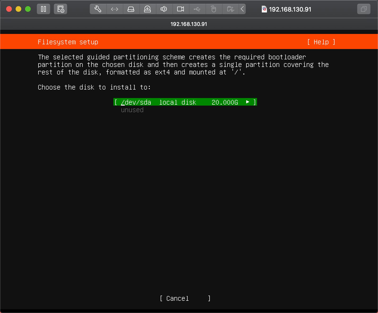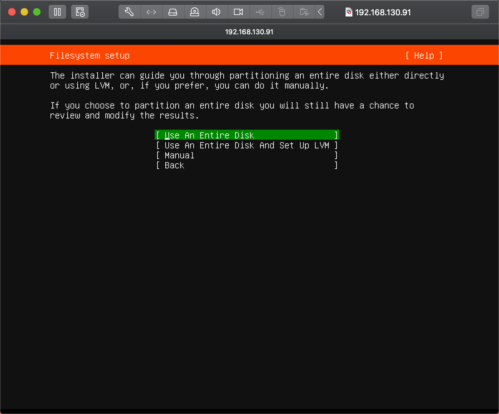 由于是虚拟机,我这里选择安装到整个盘而没有分区