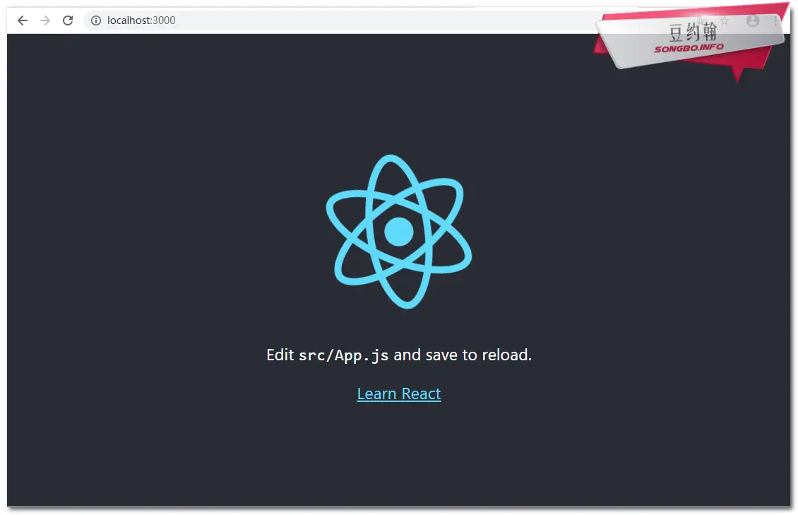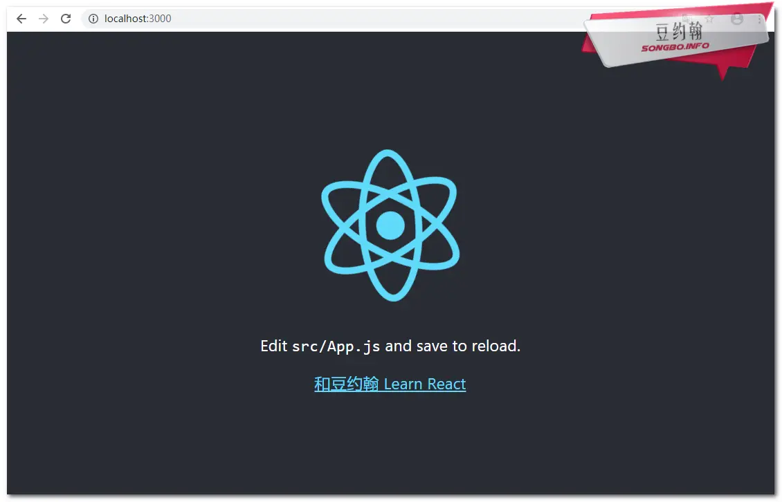 一旦运行此命令,localhost:3000新的React应用程序将弹出一个新窗口。