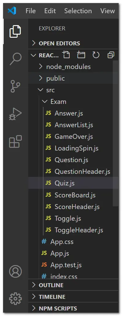 在项目src目录下新增Exam目录,Exam目录中新建Quiz.js