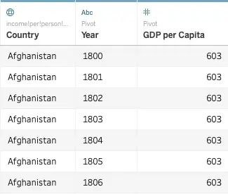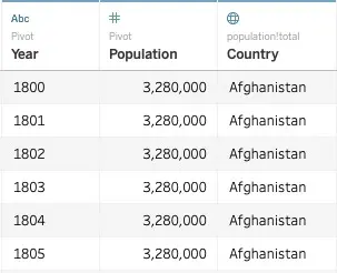 让“countries_total”数据集保持原样。你会注意到标题已经是正确的,我们不需要在这里转换任何东西。当我们在Tableau中导入数据集时,它将是这样的: