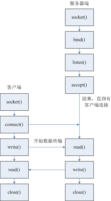在网络通信中,数据的读写可以通过read()、write()函数实现,Linux中不区分文件与套接字。