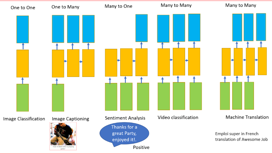 RNN可以有一个或多个输入以及一个或多个输出。这是处理顺序数据(即变量输入和变量输出)的另一个要求