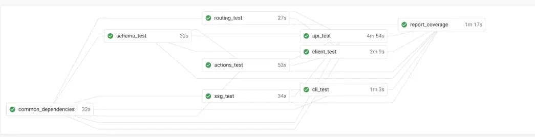 我们的 monorepo 也使我们的CI管道比所需的更加复杂。 首先,我们并行化了CircleCI构建,以加快慢速 Webpack构建。 但是,随着我们的monorepo 的增长,为每个构建分别安装依赖项的开销也在增加。 为每个构建安装依赖项成为瓶颈。 作为回应,我们使用自己编写和维护的 CircleCI 脚本巩固了构建过程,以减少使用工作。最终,我们得到了一组脆弱的CI脚本来对任何包进行剪裁、测试和构建更改。
