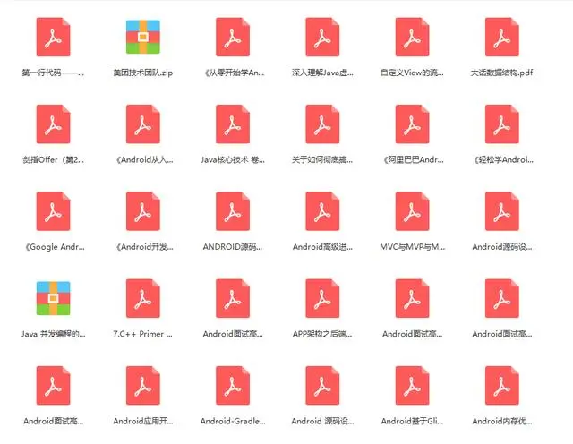 - 关于实战,我想每一个做开发的都有话要说,对于小白而言,缺乏实战经验是通病,那么除了在实际工作过程当中,我们如何去更了解实战方面的内容呢?实际上,我们很有必要去看一些实战相关的电子书。目前,我手头上整理到的电子书还算比较全面,HTTP、自定义view、c++、MVP、Android源码设计模式、Android开发艺术探索、Java并发编程的艺术、Android基于Glide的二次封装、Android内存优化——常见内存泄露及优化方案、.Java编程思想 (第4版)等高级技术都囊括其中。