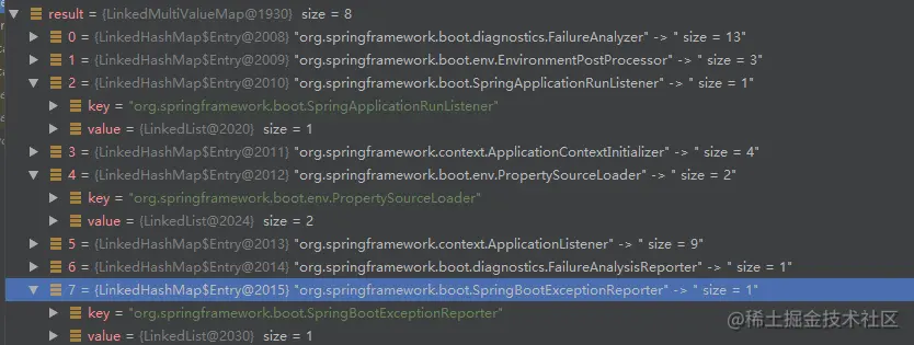附录:SpringFactoriesLoader的loadFactoryNames方法: