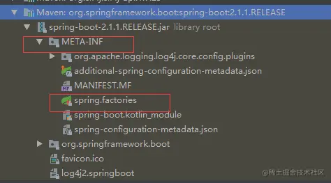 假设classLoader不为空,则依次读取jar包下的META-INF/spring.factories文件,以下图为例: