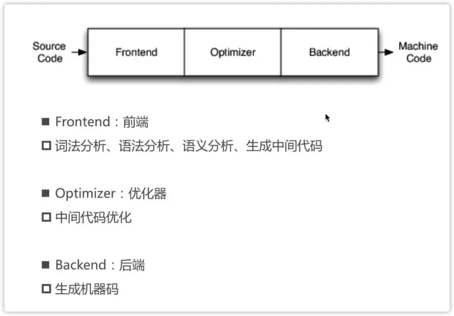 LLVM比gcc的优势是模块化,中间端都是统一的,添加新的语言的话,只需要添加一个新的前端就行