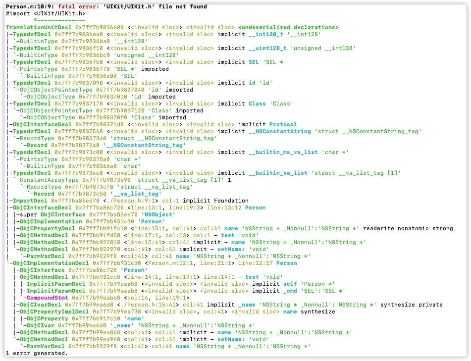clang -fmodules -fsyntax-only -Xclang -ast-dump Person.m