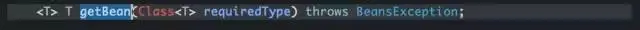 进入到了BeanFactory的接口定义方法,什么也没有。 此时我们直接在getBean上 Ctrl+T :