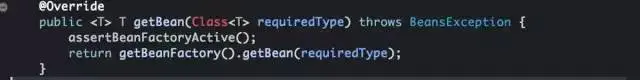 此时如果想查看getBean()方法如何实现,可能会让你失望。结果如下: