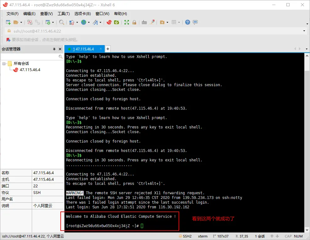 1.1Xshell6_wm:使用命令行连接阿里云(不装软件的话,使用git bash也可以的)