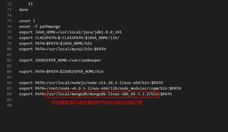 export PATH=这里放软件bin路径:$PATH