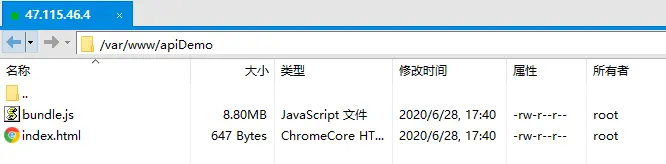 4.1、进入var文件夹下,创建www文件夹,将前端打包后的dist文件夹拖进去,文件夹名可以自定义,我这里是apiDemo