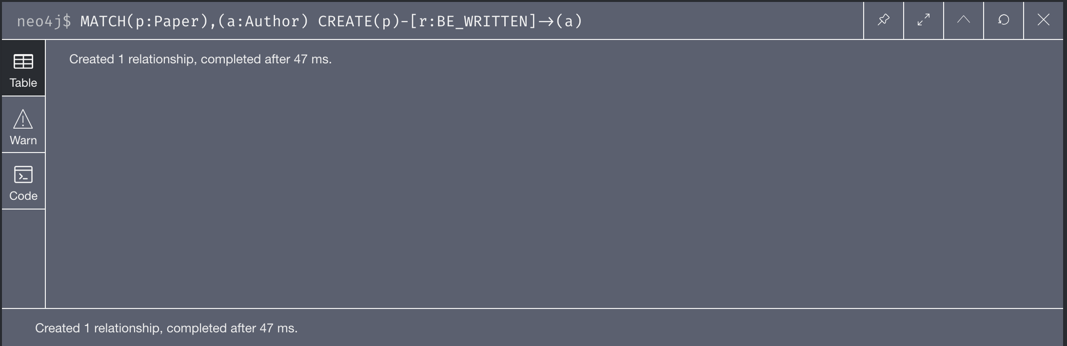 CREATE(p)-[r:BE_WRITTEN]->(a)