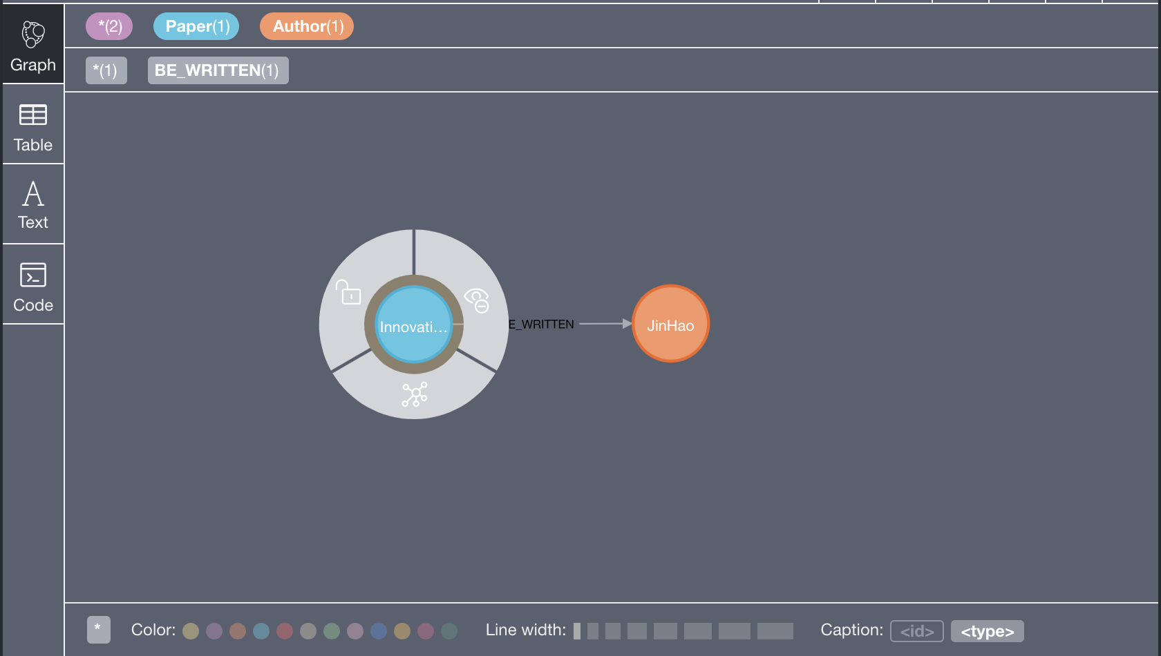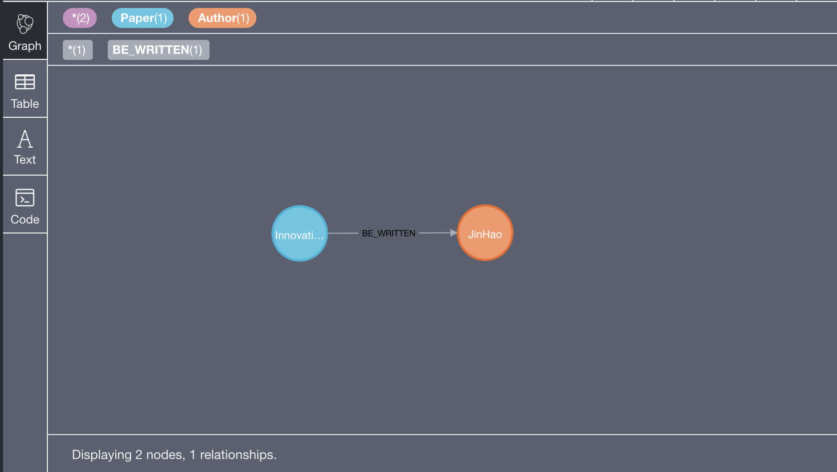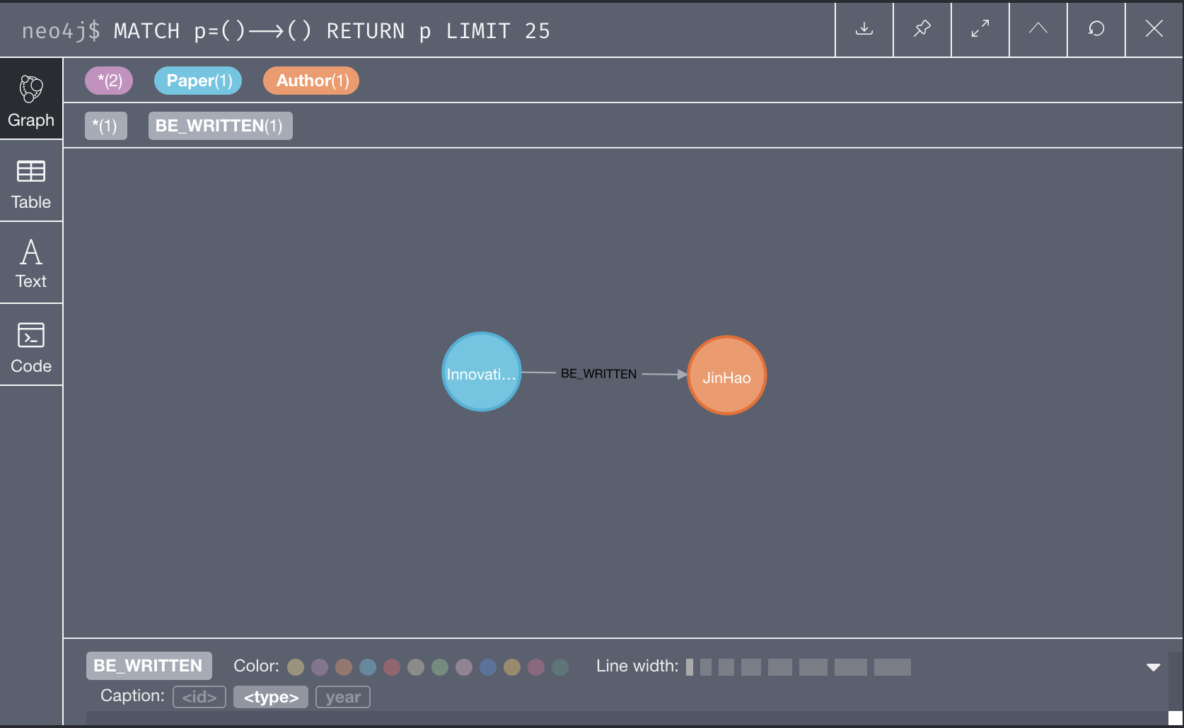 如果我们按照上述的相同步骤创建从Author到Paper的关系(那是相反的方向),将具有没有属性的双向关系。