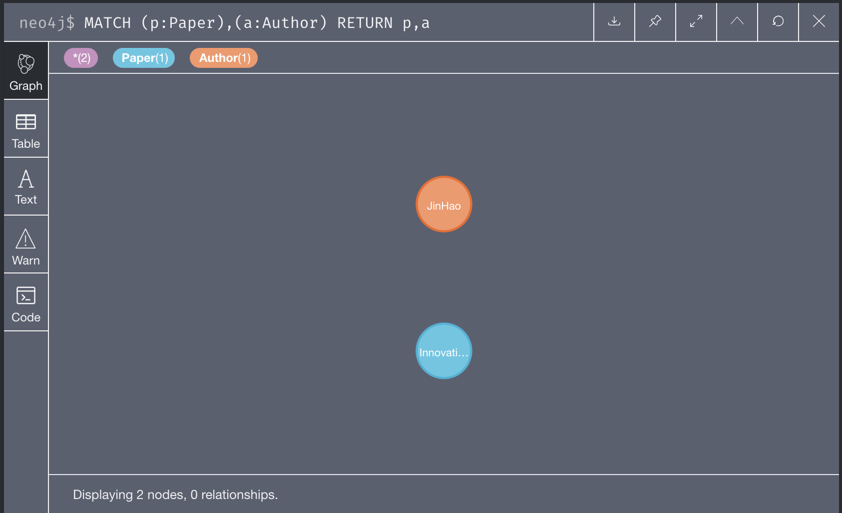 使用之前创建的Paper和Author节点创建没有属性的关系.