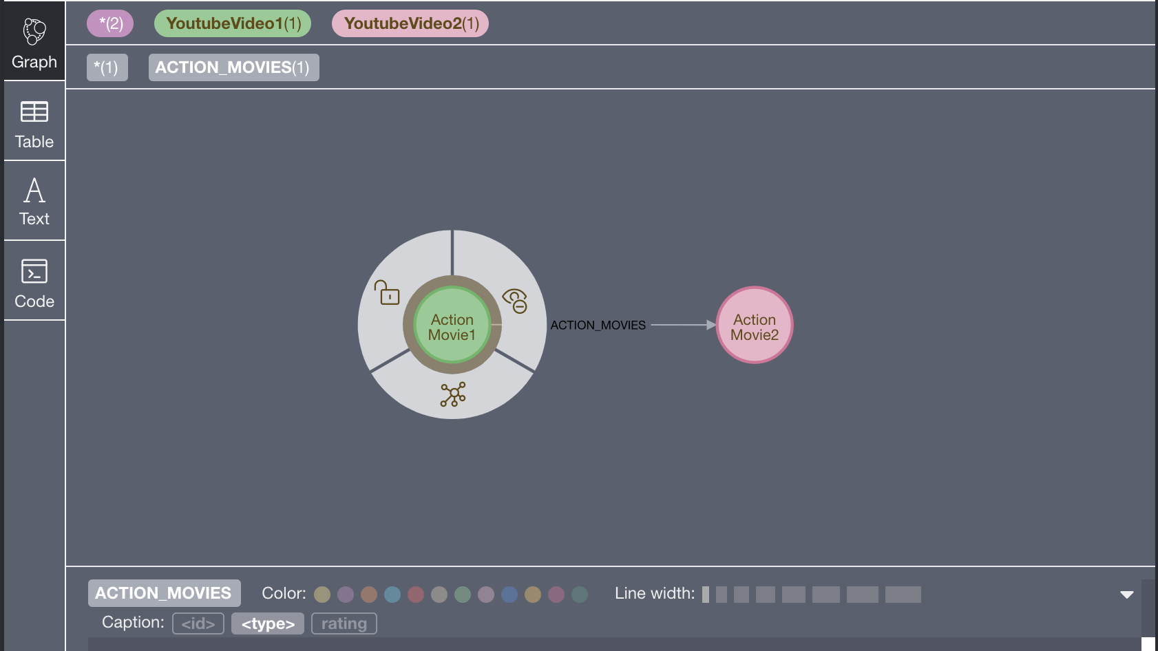 video1和YoutubeVideo1分别是“From Node”的节点名和节点标签名