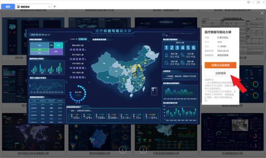 寻找模板商城合适的大屏,点击立即使用 ↓