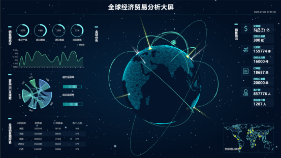 灯果可视化不仅拥有多样类型的大屏模板,分析的数据在线实时交互展示都是小儿科了,其内置上百种可视化组件和效果图,比较热门的3D效果和地图,通过设计,能搭配出千百种可视化效果,保证不会“撞款”~ 再也不用担心自己制作的大屏不如别人啦!