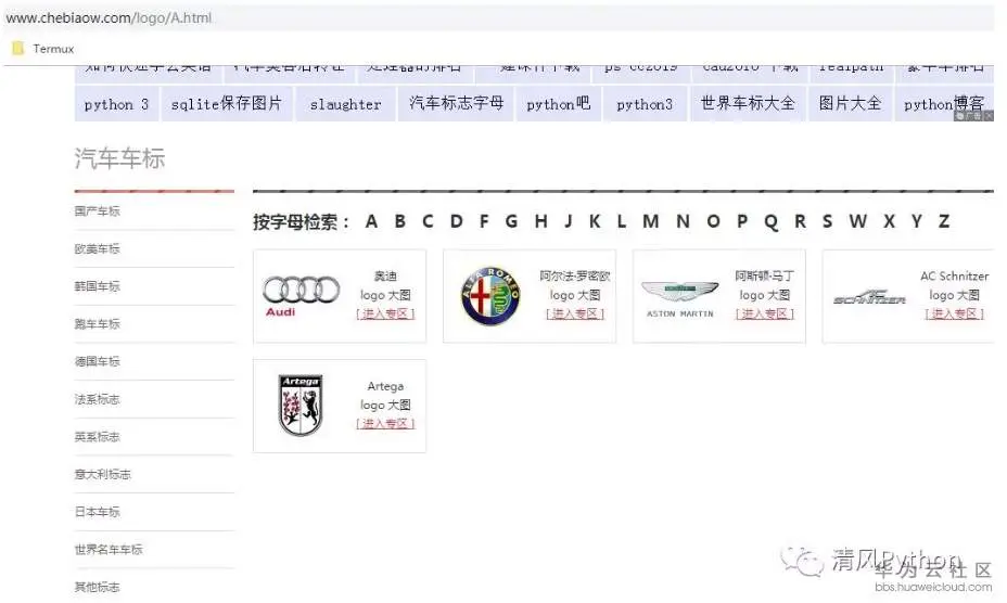 在网上找了半天车标的数据,最后看到了这个网站:车标网:www.chebiaow.com/logo。