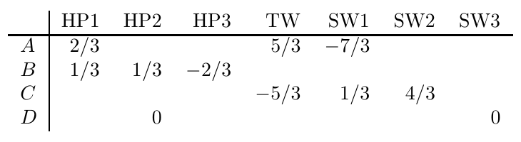 下面给出了所有值都标准化的效用矩阵。请注意,这会将较高的值转换为正值,而将较低的值转换为负值。