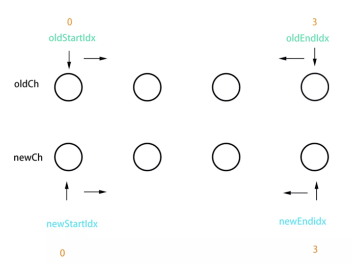 if (oldVnode === vnode),他们的引用一致,可以认为没有变化。if(oldVnode.text !== null && vnode.text !== null && oldVnode.text !== vnode.text),文本节点的比较,需要修改,则会调用Node.textContent = vnode.text。if( oldCh && ch && oldCh !== ch ), 两个节点都有子节点,而且它们不一样,这样我们会调用updateChildren函数比较子节点,这是diff的核心,后边会讲到。else if (ch),只有新的节点有子节点,调用createEle(vnode),vnode.el已经引用了老的dom节点,createEle函数会在老dom节点上添加子节点。else if (oldCh),新节点没有子节点,老节点有子节点,直接删除老节点。