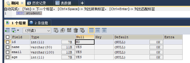 //查询student表所有数据