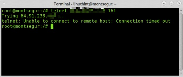 如果端口是不连通的,那么它将提示 unable connect to remote host: Connection timed out 。