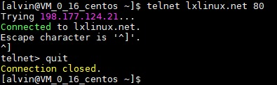 从提示中我们可以看出来,它显示 Connected to lxlinux.net. ,这说明这个端口是是连通的。