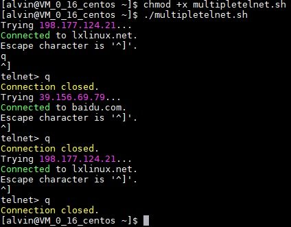 比如我们写了下面这个脚本 multipletelnet.sh :