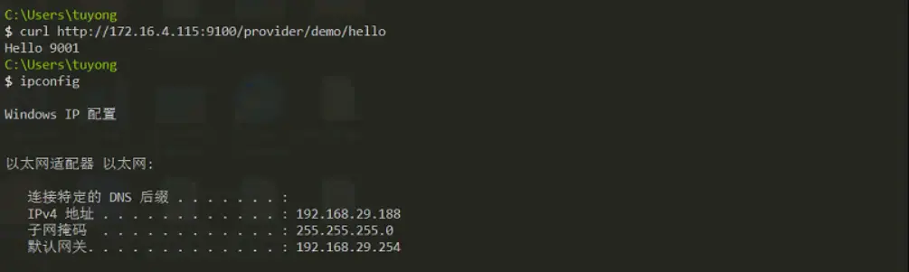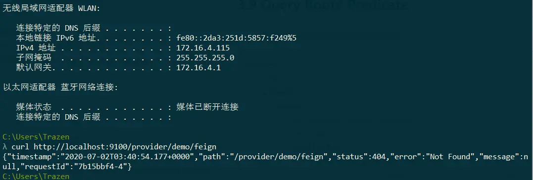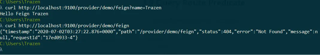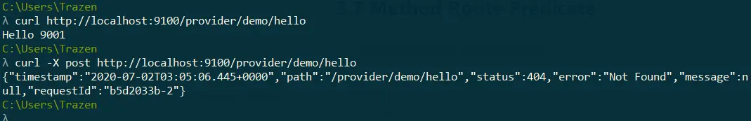 使用curl测试如下,只有访问路径为/provider/xxx 时请求可以匹配该路由。