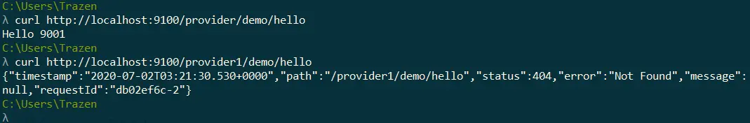 # eg. 访问http://localhost:9100/provider/demo/hello-> eureka-client-provider/demo/hello