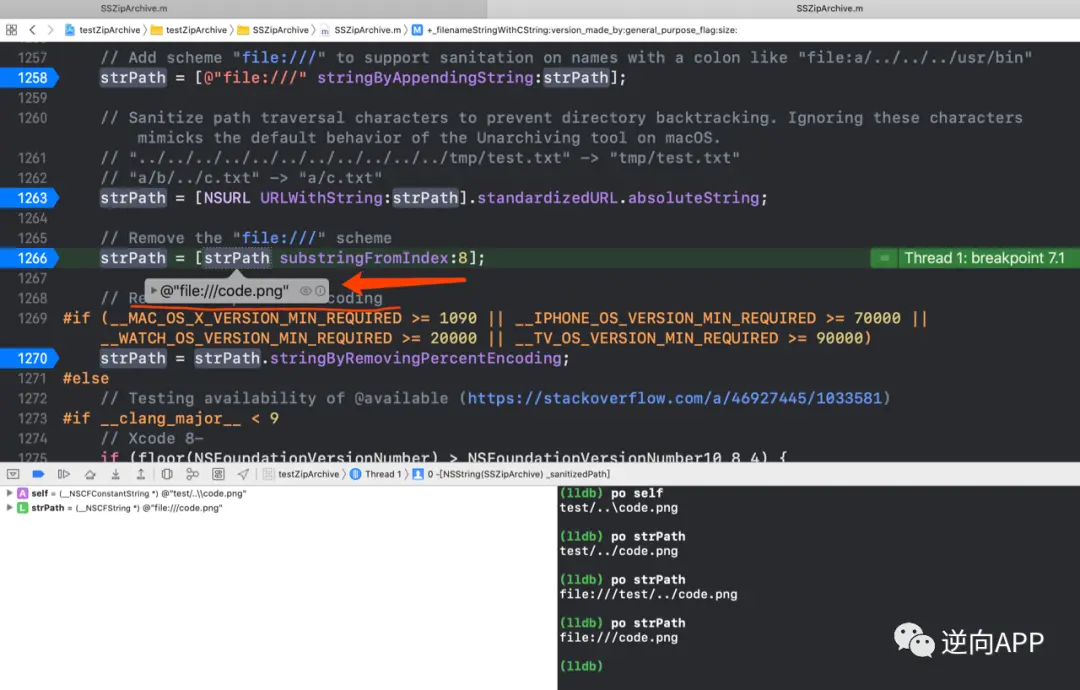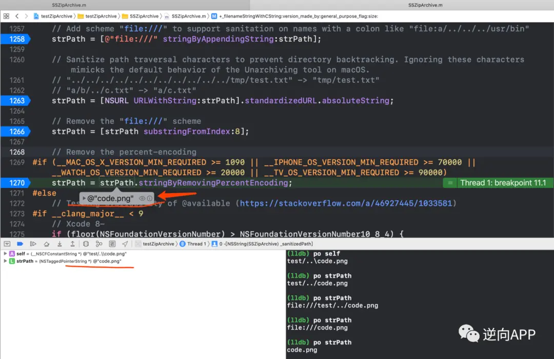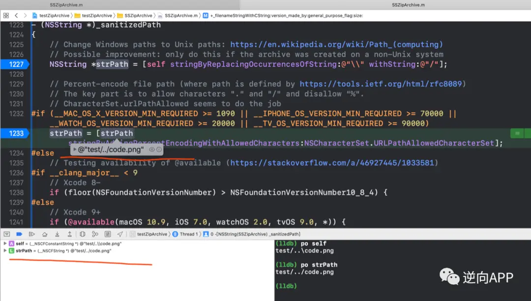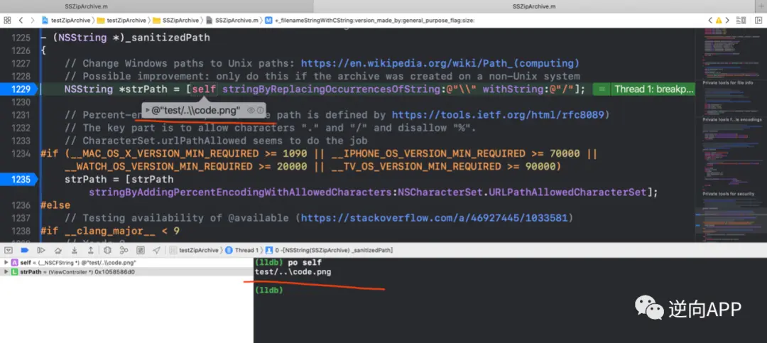 这件事之后Ziparchive修复了该漏洞。代码中增加了一个 - (NSString *)_sanitizedPath 方法用于专门处理压缩包内的文件名,清除其中有害部分。
