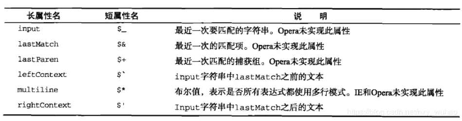 通过RegExp的属性,我们可以获知一些全局的正则信息,比如刚刚匹配输入了什么字符串,上次匹配了哪些信息,这个有点像全局的静态变量,我们看看全局属性支持哪些信息的获取