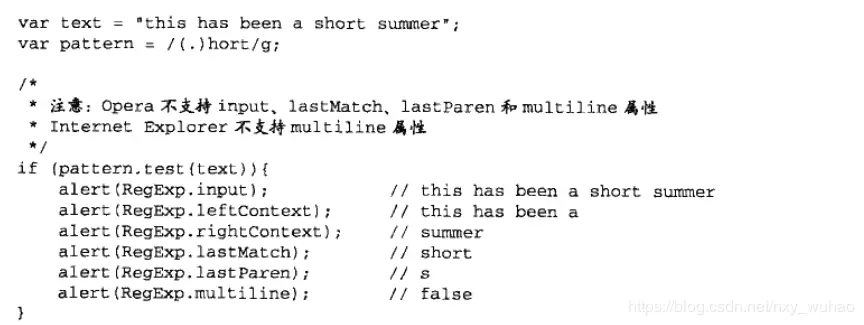 由于正则对象的属性都可以在字面变量中看得到,所以这些方法用处并不大,知道就好: