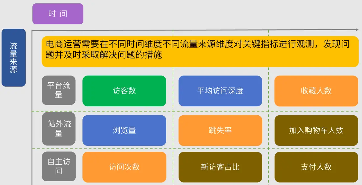 - 流量转化率重要指标:访客数、收藏人数、加入购物车人数、支付人数、收藏人数占比、加入购物车人数占比、支付人数占比