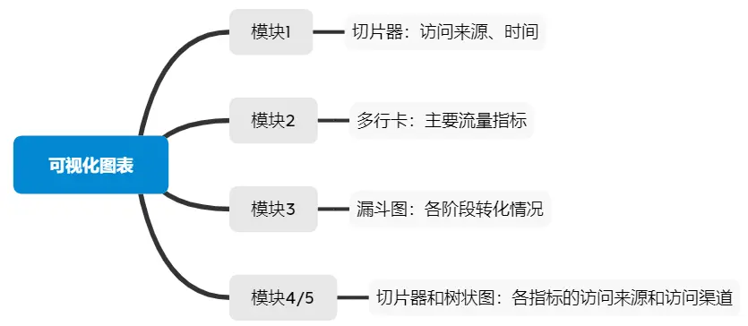 注:模块4/5用到了【新建参数】,利用参数构建了度量值指标与树状图的联系,树状图可以随切片器的选择展示不同指标的访问来源和访问渠道。