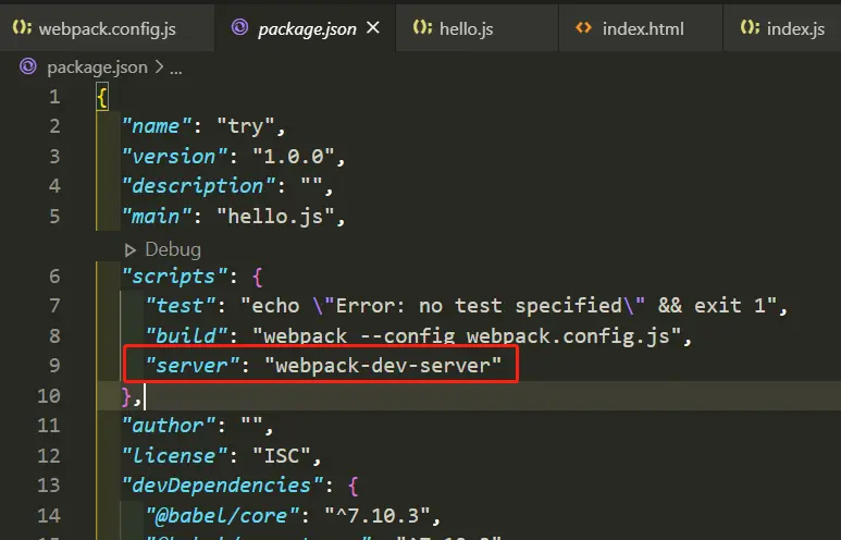 DevServer是用来提高开发效率的,不是用来打包的。使用这个需要先安装npm i -D webpack-dev-server,webpack-dev-server命令不能在终端中直接使用,需要在package.json中配置,然后npm run server才能启动(命令可以自定义)。