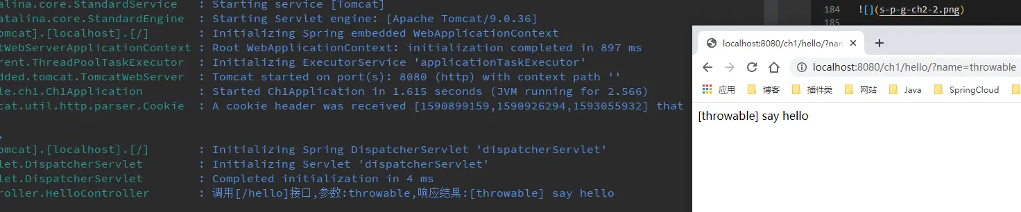 用用浏览器访问http://localhost:8080/ch1/hello?name=thrwoable可见输出如下: