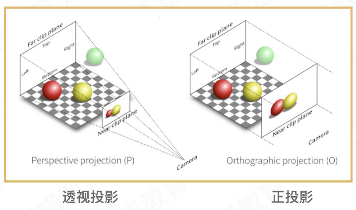 观察坐标变为裁剪坐标的投影矩阵分为两种: