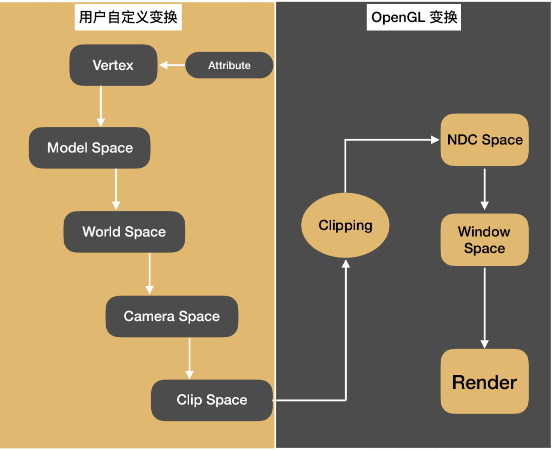 将原始坐标转化为标准化设备坐标,再转化为屏幕坐标通常是分步骤进行的,类似于流水线的样子。在流水线中,物体的顶点最终转为屏幕坐标之前还会经过多个坐标系统的转换。这样做的好处在于,在特定的坐标系统中,我们只需要关心特定的操作,相当于将复杂的转换过程拆分成了不同的小步骤,更有利于操作和运算。